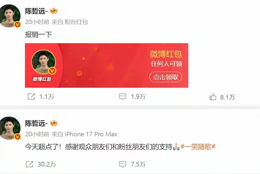还有陈哲远线上线下的宣传也十分用心,让越来越多人入场。大结局时热度破了9000,为爱奇艺2025开播剧集热度排名第8!用A+的站内待遇播出S+的效果,真的算低开高走了。陈哲远和陈鹤一还都发了红包,感谢追剧观众,十分真诚。
